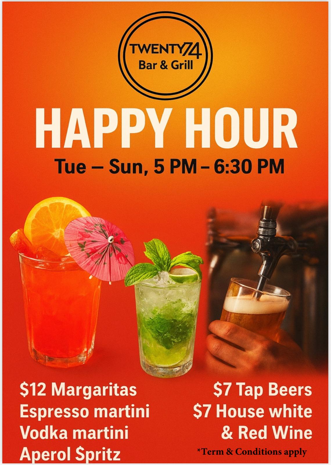Happy Hour: 5 PM — 6:30 PM
