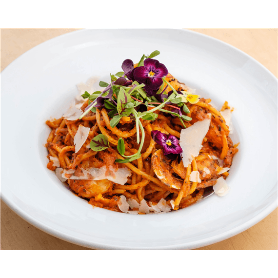 Spaghetti, tiger prawn, scallops, barramundi, mussels on rich napolitana sauce with basil, parmesan & butter.